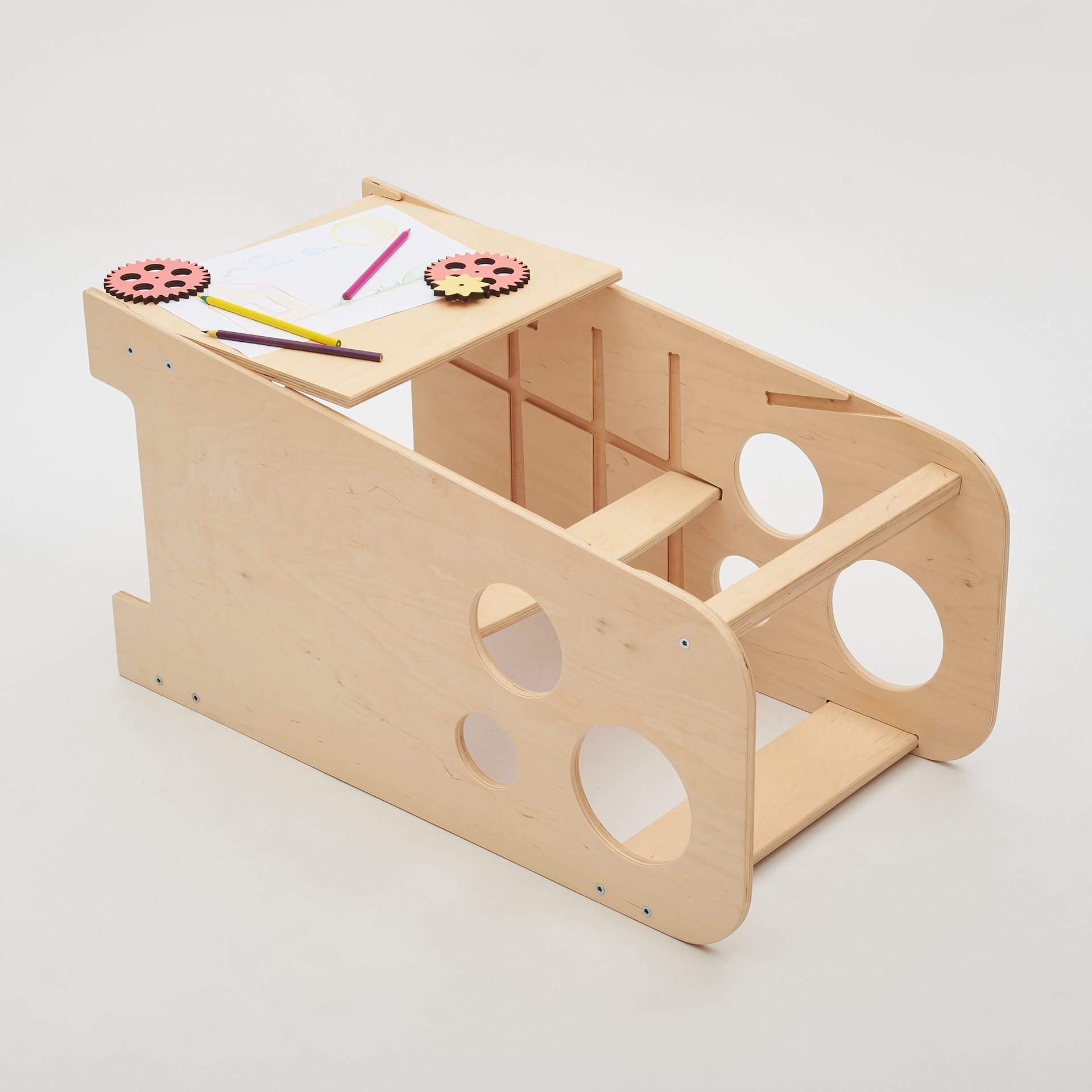Rostoucí učící věž děti ocení nejen v kuchyni při pozorovování všech Vašich aktivit a zapojování se do nich. Jednoduchým způsobem ji totiž proměníte ve stoleček se židličkou. Díky výškově nastavitelné plošině i schodku, který je navíc multifunkční, poroste učící věž s dítětem.
