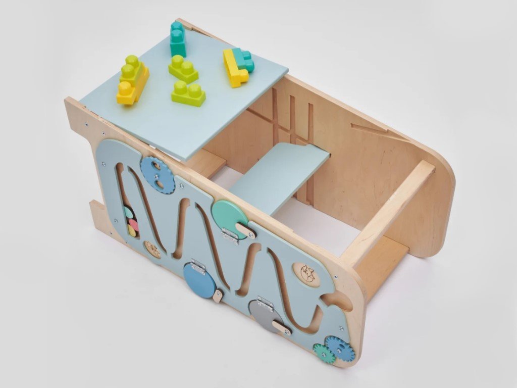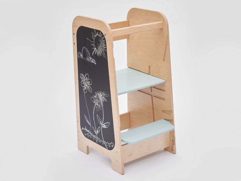 Rostoucí učící věž není jen kuchyňským pomocníkem, ale snadno se promění v set dětského nábytku. Na svých bočních stranách dětem nabízí spoustu herních prvků, se kterými se děti zabaví na dlouhé chvíle.